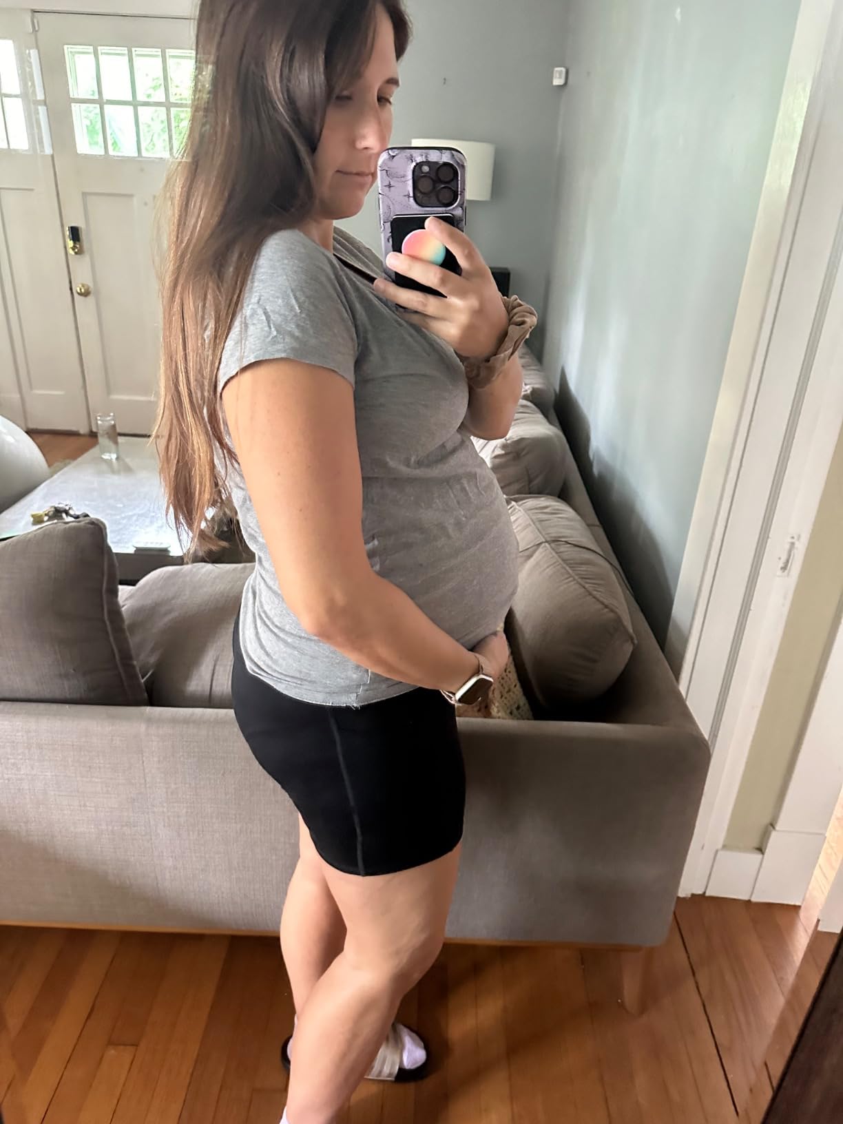 These are the only maternity shorts I’ve found that don’t slide down throughout the day. So worth it!